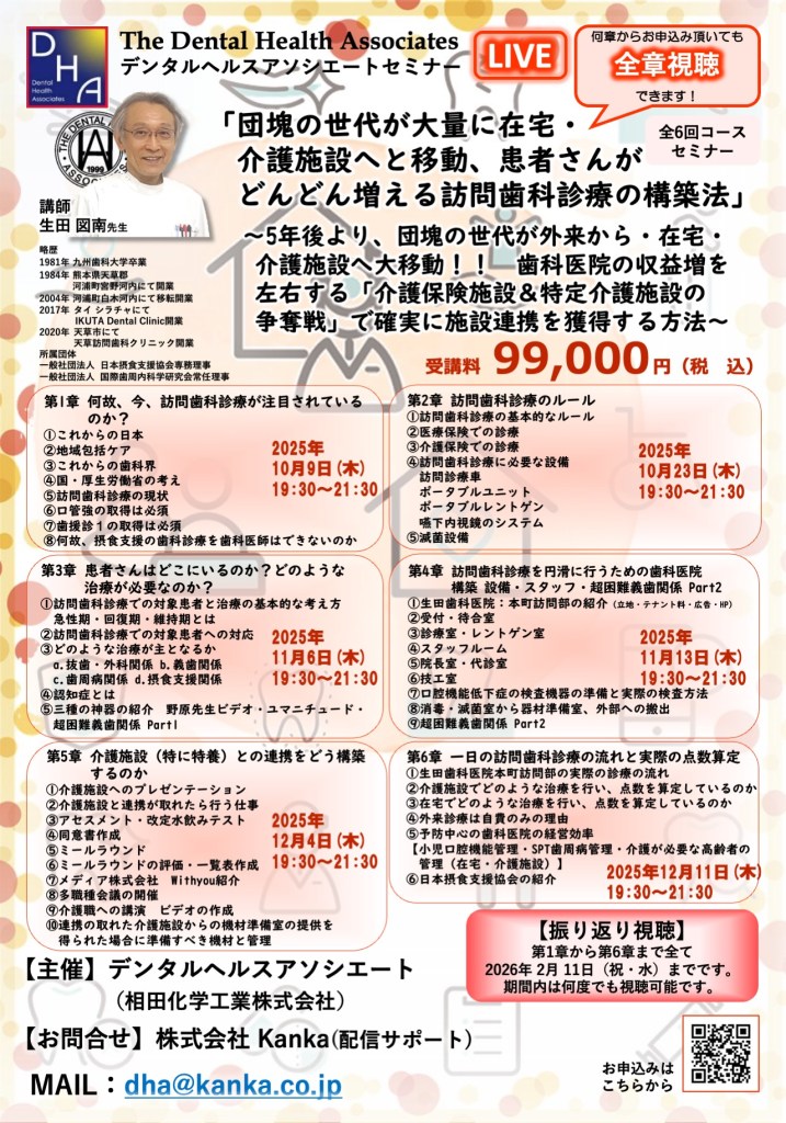 【2025-26最新セミナー】生田図南先生による訪問歯科診療セミナー LIVE 開催!