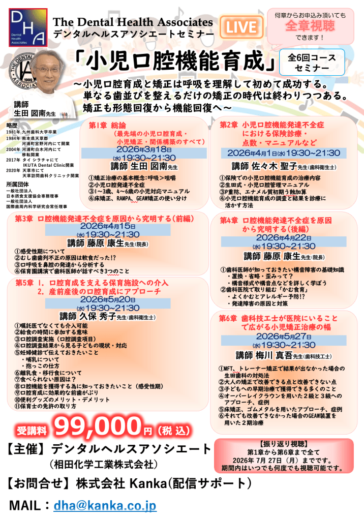 生田歯科医院が実践してきた機能回復に基づく小児口腔育成の取り組みを体系的に学びます。
